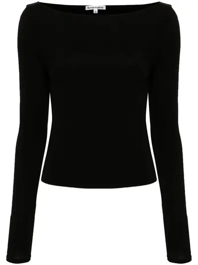 black TENCEL™ Lyocell blend lightweight jersey boat neck long sleeves