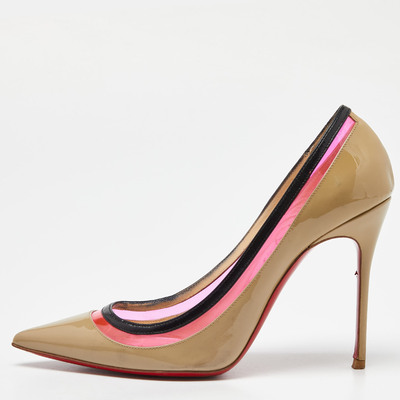 Christian Louboutin Beige/Pink Patent Leather and PVC Paulina Pumps Size 36 965062 (бежевый, lpn26000748)