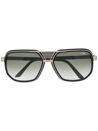 Black and silver-tone 666 square frame sunglasses from Cazal featuring gradient lenses, a double nose bridge, straight arms with curved tips and a side embossed logo stamp. This item comes with a protective case.