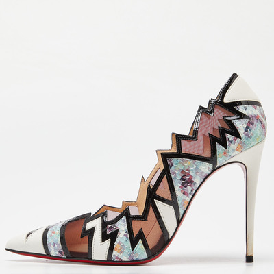 Christian Louboutin Multicolor Python and Mesh Explorete Pigalle Zig Zag Trim Pointed Toe Pumps Size 36.5 965871 (lpn26056866)