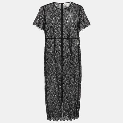 Diane Von Furstenberg Black Lace Tailored Overlay Midi Dress M 961145 (чёрный, lpn26063609)