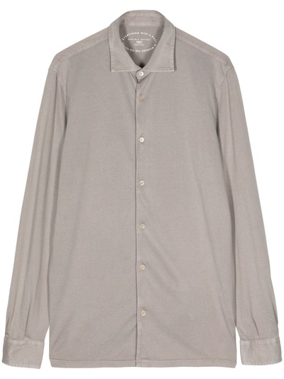 taupe grey cotton jersey texture spread collar front button fastening long sleeves buttoned cuffs straight hem
