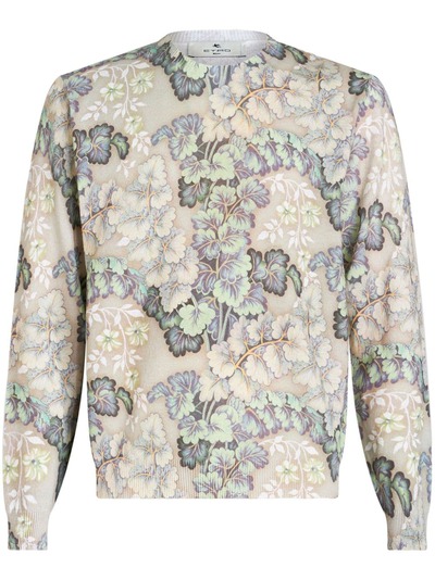 multicolour cotton/linen all-over floral print crew neck long sleeves straight hem ribbed cuffs and hem