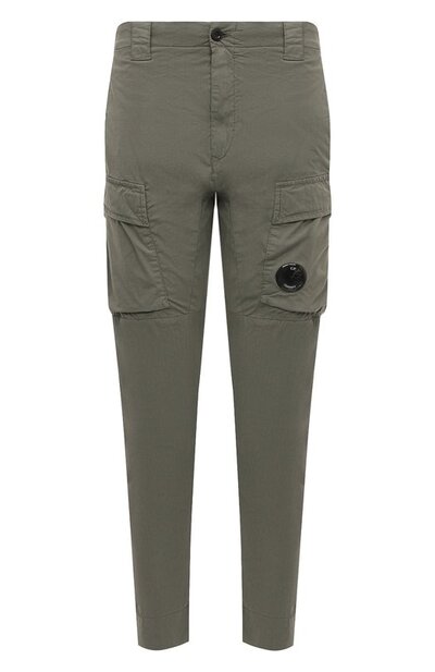 Зауженные карго оттенка хаки сшили из эластичной хлопковой ткани, укрепленной прочными нейлоновыми волокнами. Брюки из такого дышащего материала комфортно садятся по фигуре, не сковывают движения и долго не теряют изначальный вид. Окрашенную в готовом виде модель с усиленными шлевками для ремня декорировали на одном из накладных карманов фирменной глянцевой линзой.