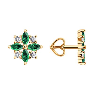 Серьги Sokolov из золота с наноизумрудами и фианитами 2304116990 (lpn26143334)