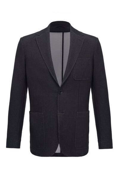 Темно-синий однобортный пиджак с тремя накладными карманами добавит непринужденную элегантность повседневному образу с брюками, рубашкой и лоферами. Менее формальной модель делают облегченная конструкция без подклада и выразительная фактура материала. Итальянские мастера использовали в производстве немного тянущуюся ткань на основе дышащего хлопка.
