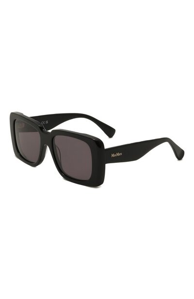 Для изготовления широкой черной оправы квадратных очков в пол-лица использовали легкий прочный ацетат, отполированный до глянцевого блеска. Фигурные дужки украсили на висках небольшим золотистым логотипом, деликатно обозначив принадлежность аксессуара марке. Однотонные темно-серые линзы из устойчивого к потертостям поликарбоната обеспечивают 100% защиты от ультрафиолетовых лучей.