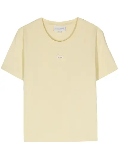 butter yellow cotton jersey texture signature fox motif crew neck short sleeves straight hem