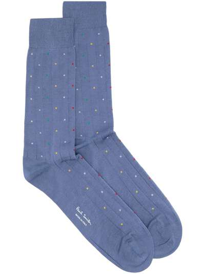 cornflower blue cotton blend polka dot print ribbed panelling mid-calf length Be sure before opening, as socks and hosiery can only be returned in their original, unopened packaging.
