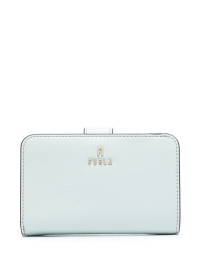 aqua blue calf leather grained texture tonal stitching curved corners bi-fold design gold-tone logo plaque front zip-fastening pocket internal note compartment four internal slip pockets 10 internal card slots debossed internal logo gold-tone hardware strap and press-stud fastening This piece comes complete with a protective dust bag.