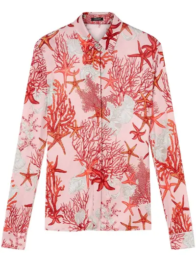 light pink/multicolour sea life print classic collar concealed front fastening long sleeves straight hem