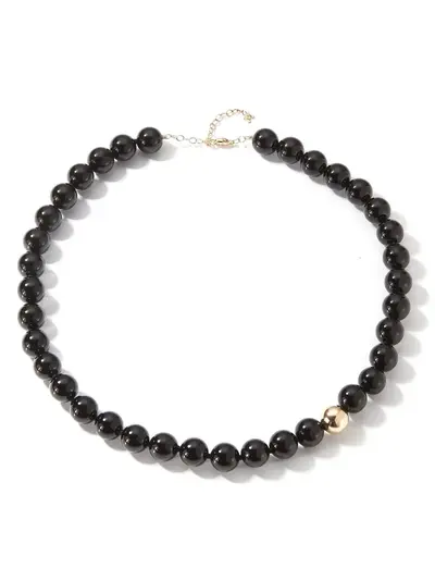 14kt yellow gold polished finish 4mm onyx beads logo charm lobster claw fastening Normal everyday use and external agents may reduce the lustre of gemstones and gold surfaces. To maintain, use specific, non-abrasive products specially meant for cleaning jewellery.