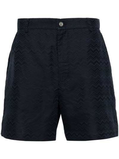 navy blue cotton-linen blend patterned jacquard chevron print dart detailing mid-rise concealed fly and button fastening belt loops two diagonal pockets to the sides two rear button-fastening jetted pockets straight leg The item you receive may differ slightly from the item photographed. This is due to the artisanal nature with which all Missoni products are constructed.