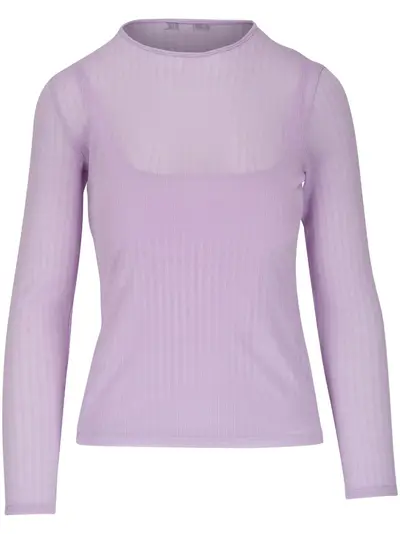 lavender purple ribbed knit semi-sheer construction round neck long sleeves straight hem