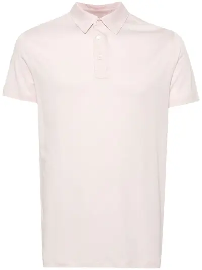 light pink jersey texture polo collar front button placket short sleeves straight hem