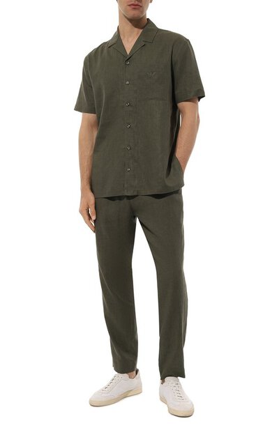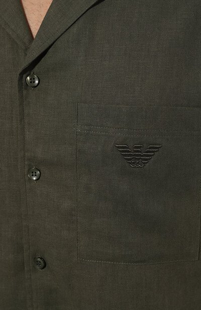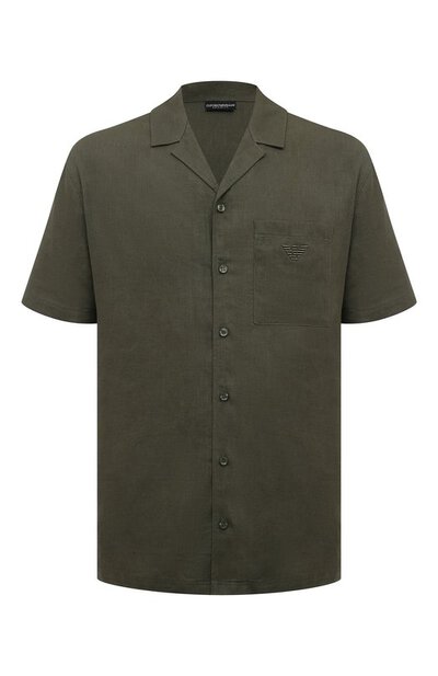 Рубашка цвета хаки изготовлена из легкой ткани на основе шелковистой вискозы и фактурного льна: прочный материал отлично пропускает воздух, а выверенный до мелочей крой не сковывает движения. Модель дополнена нагрудным карманом с вышитой эмблемой бренда.