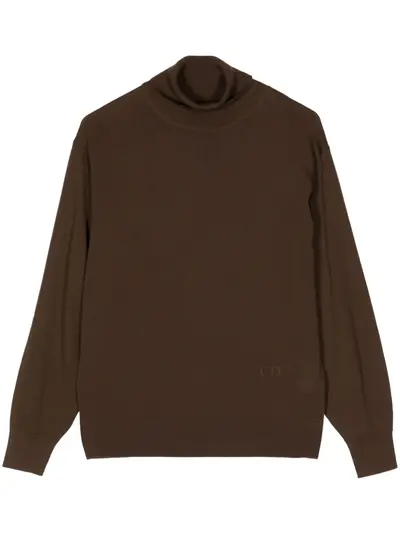 chocolate brown wool embroidered logo to the front knitted construction roll neck long sleeves straight hem Condition: GOOD. This previously owned and used item is in good condition with minimal signs of use. This may include fading of material or plating and scratches.