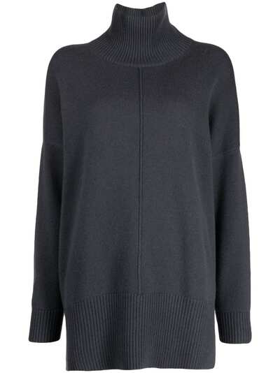 dark grey cashmere knitted construction ribbed trim seam detailing mock neck drop shoulder long sleeves long length straight hem