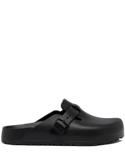 black leather buckle-strap fastening slip-on style branded leather insole cork footbed EVAsole