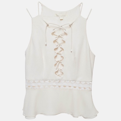 Jonathan Simkhai White Lace-up Crepe Flounce Top S 983604 (белый, lpn26414799)