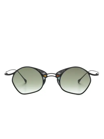 black titanium metal frame gradient lenses UV-protective lenses nose pads straight arms curved tips