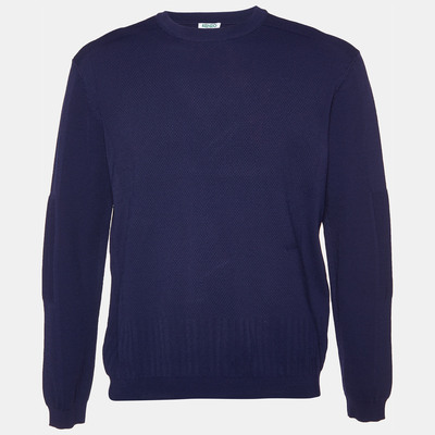 This comfortable navy blue jumper from Kenzo will remain a wardrobe staple, complementing jeans to tailored pants. It has a knit construction with a round neckline and long sleeves.