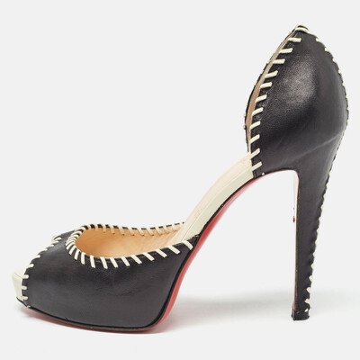 Christian Louboutin Black Leather Whipstitch Detail Peep Toe D'Orsay Pumps Size 37.5 980488 (чёрный, lpn26434146)