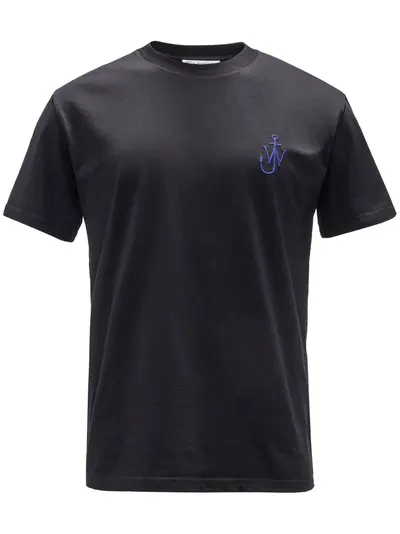 black organic cotton jersey texture graphic print to the rear signature JW-initials anchor logo crew neck short sleeves straight hem