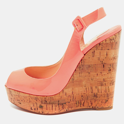 Christian Louboutin Neon Peach Patent Leather Une Plume Wedge Slingback Pumps Size 38 986829 (розовый, lpn26444572)