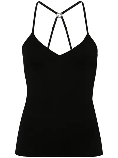 black stretch-design fine ribbed signature Interlocking G logo silver-tone logo plaque V-neck adjustable spaghetti straps straight hem