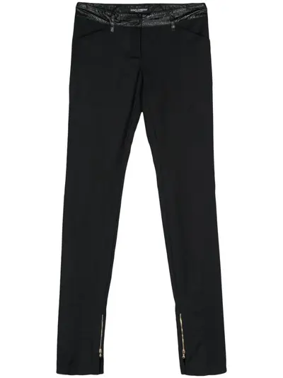 circa 2000s black faux-leather trim stretch-design panelled design low-rise belt loops front press-stud and zip fastening two rear flap pockets straight leg with ankle zips skinny cut Condition: GOOD. This previously owned and used item is in good condition with minimal signs of use. This may include fading of material or plating and scratches.