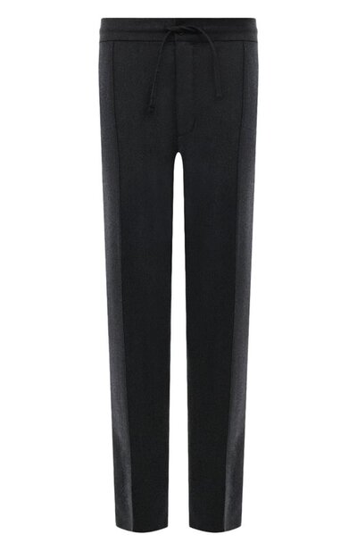 Синие брюки с широким эластичным поясом-кулиской и тремя врезными карманами сшиты из легкой шерстяной фланели. Мягкая фактурная ткань почти не мнется и отлично пропускает воздух, а швы-стрелки визуально вытягивают силуэт. Предлагаем создать образ с курткой в тон, бордовым кардиганом и черными дерби.