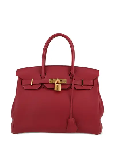 circa 2017 pomegranate red Togo leather two rolled top handles foldover top signature sangles straps twist-lock fastening padlock fastening main compartment internal zip-fastening pocket internal slip pocket internal logo stamp leather lining metal feet set of keys hanging key fob gold-tone hardware Condition: GOOD. This previously owned and used item is in good condition with minimal signs of use. This may include fading of material or plating and scratches.