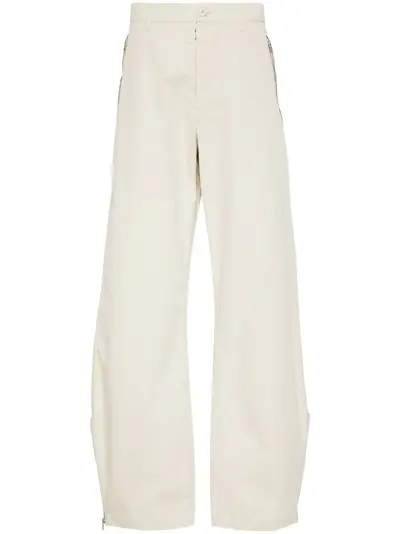ecru cotton gabardine weave belt loops two zip-fastening pockets rear zip-fastening pocket ankle zips tapered leg concealed front button, hook and zip fastening