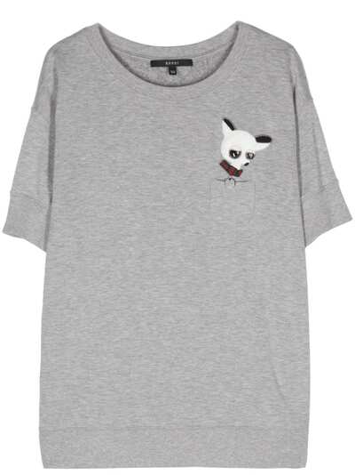 circa 2000s heather grey cotton jersey texture round neck drop shoulder ribbed cuffs and hem dog patch detail with logo pendant chest patch pocket straight hem Condition: GOOD. This previously owned and used item is in good condition with minimal signs of use. This may include fading of material or plating and scratches.