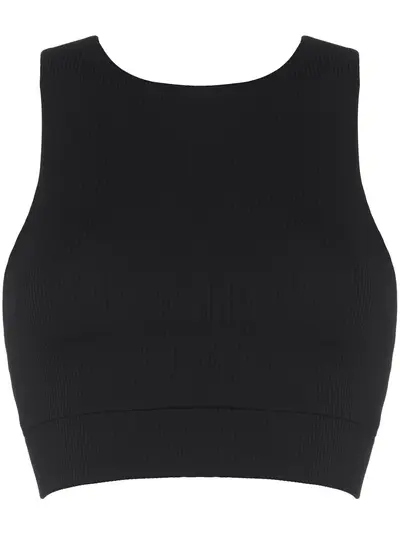 black stretch-jersey round neck sleeveless removable pads straight hem racerback small tonal embroidered logo to the rear full lining straight hem pull-on style