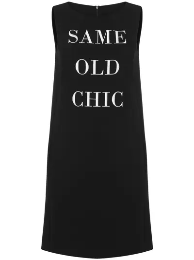 jet black stretch-design embroidered design round neck concealed rear zip fastening sleeveless two side inset pockets straight hem above-knee length