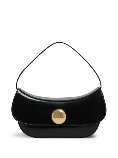 black leather gold-tone hardware debossed logo to the rear foldover top with magnetic fastening single shoulder strap main compartment