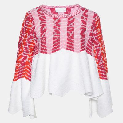 Peter Pilotto Pink/White Cotton & Wool Knit Peplum Sweater S 995364 (розовый, lpn26538535)