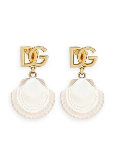 gold-tone brass drop design logo plaque shell pendant butterfly fastening for pierced ears These earrings come as a pair.