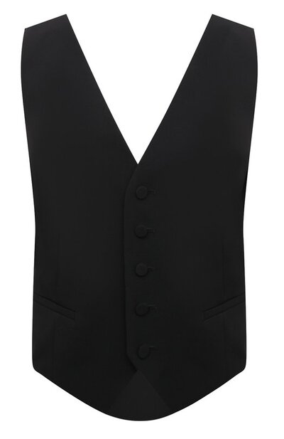 Мастера марки, основанной Ниной Риччи, сшили черный жилет из мягкого кади. Спинку модели с V-образным вырезом заменили драпированной, эффектно ниспадающей деталью, оставляющей большую часть спины открытой. Наши стилисты предлагают создать образ total black со строгими брюками и босоножками.