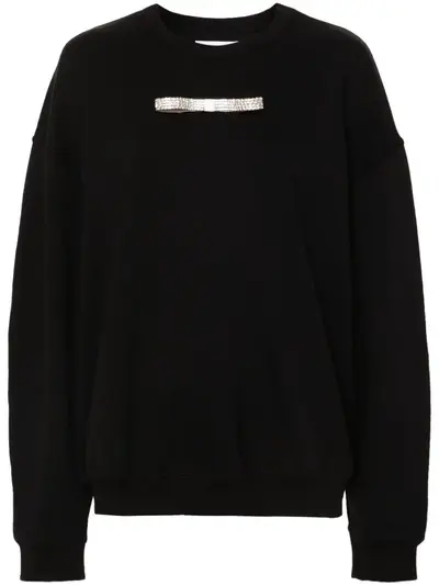 black cotton jersey texture crew neck crystal-embellished bow drop shoulder long sleeves ribbed cuffs and hem