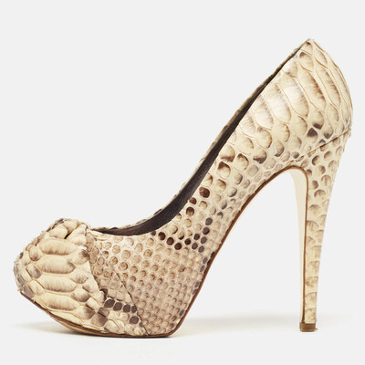 Gina Beige/Brown Python Leather Hoodie Platform Pumps Size 39 990914 (бежевый, lpn26557770)