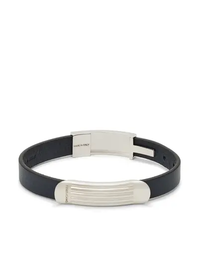 black/silver-tone brass leather strap engraved logo button fastening adjustable fit
