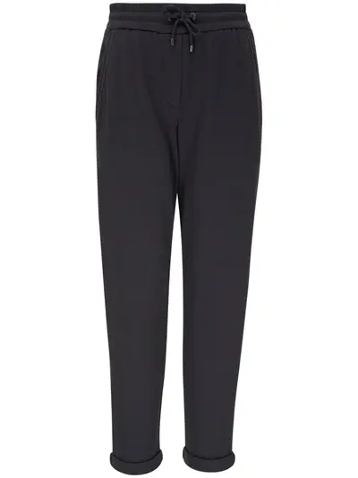 dark green cotton-silk blend jersey texture high-waisted elasticated drawstring waistband straight leg two side slit pockets turn-up hem