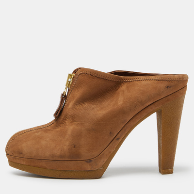Sergio Rossi Brown Nubuck Leather Zip Platform Mules Size 38.5 996740 (коричневый, lpn26562881)
