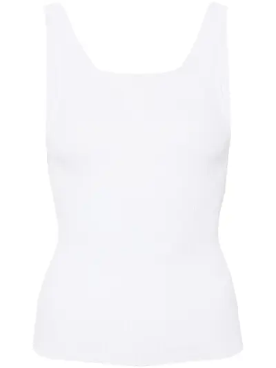 white ribbed knit square neck thin straps sleeveless cropped square open back tonal embroidered logo to the rear ribbed hem
