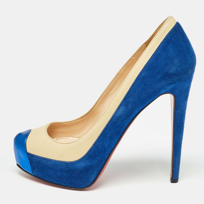 Christian Louboutin Blue/Light Yellow Suede and Leather Pumps Size 36 997973 (голубой, lpn26570557)