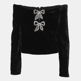Self-Portrait Black Crepe & Lace Off-Shoulder Top S 998853 (чёрный, lpn26574016)