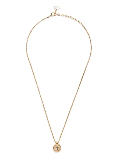 gold plated polished finish delicate chain signature CD logo pendant twist detailing logo charm spring-ring fastening Condition: GOOD. This previously owned and used item is in good condition with minimal signs of use. This may include fading of material or plating and scratches.